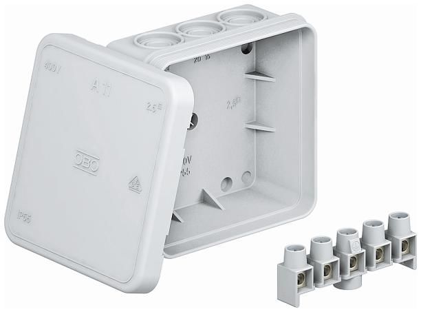OBO Bettermann 2000326 junction box A 11/5 VDE IP54, 5x2, light gray 5qmm 85x85x40mm