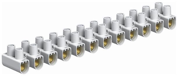 Steel terminals, steel screws, galvanized, 12-pole strips that can be separated into individual terminals using a 'twist'n'pull' method.
