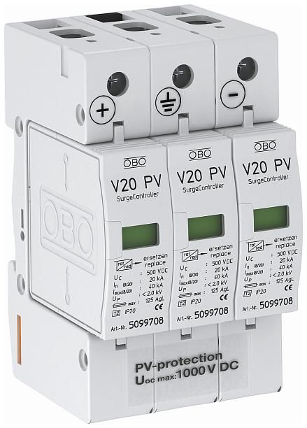 OBO Bettermann 5094608 V20-C3-PH-1000 surge, 1000V 3-pole for PV systems