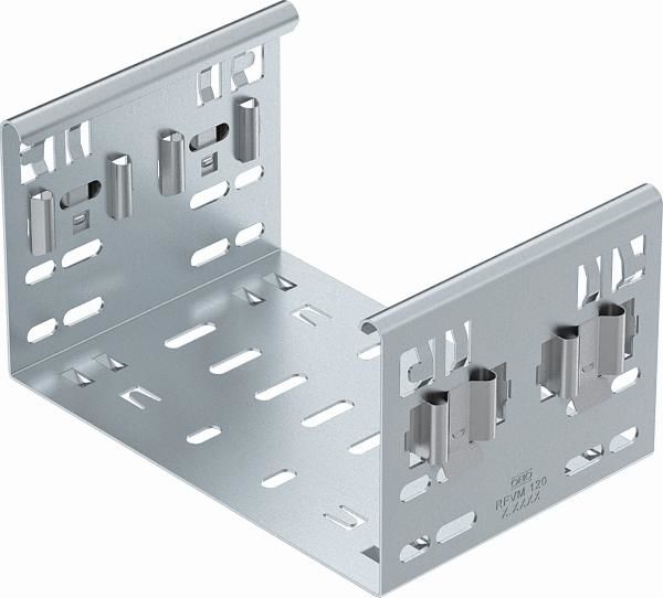 The molded part connector is equipped with four clamps and can also be used for direct connection to a cut cable tray if only two clamps are fitted on one side. To connect a cut cable tray to a molded part, a Magic longitudinal connector set is then required.