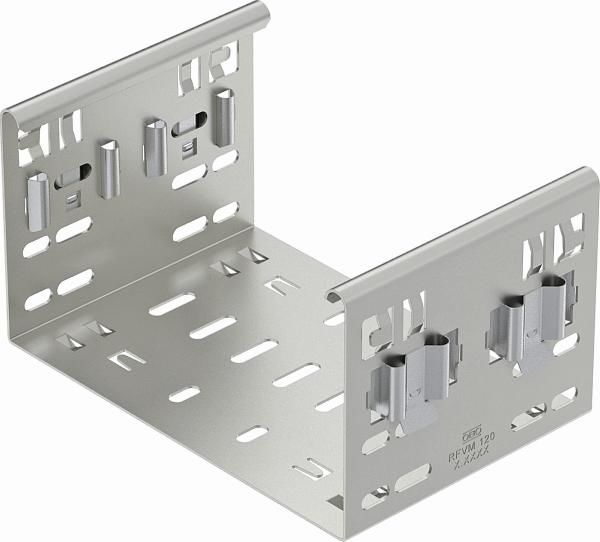 The molded part connector is equipped with four clamps and can also be used for direct connection to a cut cable tray if only two clamps are fitted on one side. To connect a cut cable tray to a molded part, a Magic longitudinal connector set is then required.