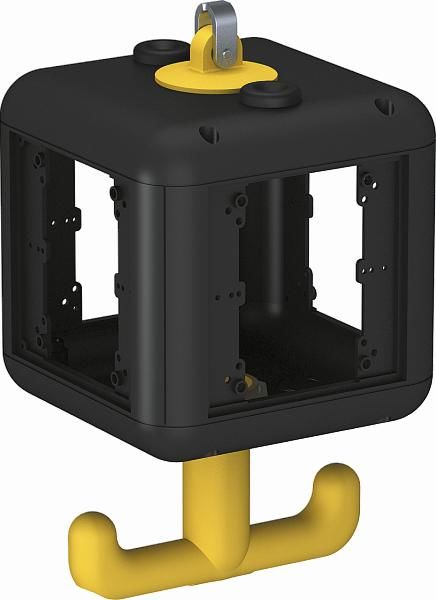 Housing made of high impact resistant polyamide suitable for 4 installation devices (max. depth 48 mm) with support ring or bracket (mounting track 60 or 67 mm) and for devices with flange, eg CEE industrial plug and socket device (mounting track 60 x 60 mm or 70 x 70 mm), or'' latching'' with Ackermann-grounded Infected doses. Each installation device is covered with a separate cover made of plastic molding material, so that it can be mounted or dismounted separately.