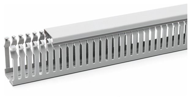 OBO Bettermann 6132384 OBO BEDIN 7550 sgr wiring duct BE DIN Set 75x50 7030 PVC sgr is offered by us in a sales unit of 32 meters If you need a larger quantity, you can contact us at any time. We will make a special offer for you
