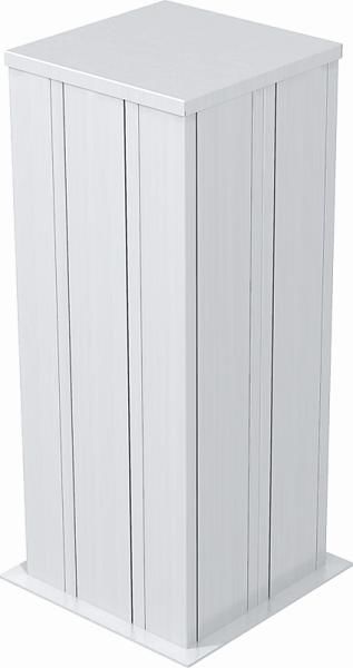 Empty, can be fitted from all 4 sides with standard devices (socket, telephone, etc.). 2 sides of the installation center can be fitted with 2 lines, the other 2 sides with 1 line. Each installation line can accommodate 5 devices, the entire installation center accommodates a maximum of 30 devices. Fastened directly to the floor. Device installation boxes must be ordered separately. The installation column is suitable for front-locking device installation boxes of the 71GD... series. The installation of a partition wall type GA-TW (6279711) and the mounting of the top part clamp type KL80A are optionally possible.