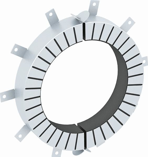 Fire protection inserts enclosed in a sheet steel housing press the burning thermoplastic pipes shut with very high expansion pressure in the event of a fire. For indoor use. Fastened with dowels or M8 threaded rods.