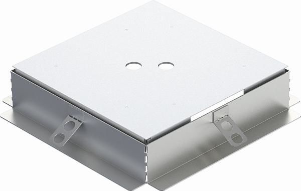 The formwork is placed floating on underfloor boxes with mounting covers, nominal size 9, and closes the gaps between the underfloor box and the cassette frame.