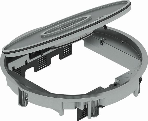 Surface made of polished aluminum with a floor covering recess of 3 mm. For an installation depth of 65 mm.