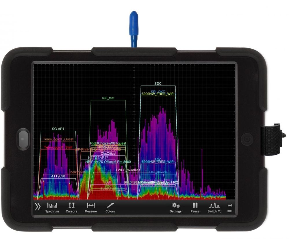 The 2.4 GHz frequency band is already a very heavily frequented area and the 5th band will certainly soon be there too GHz network may be “clogged”. That's why WiPry 5 supports both bands. In addition to WLAN, these frequencies are also legally used by other radio components. These include, for example, baby monitors, wireless telephones, garage door openers, motion detectors, radio remote controls and microwave ovens. Since a usable WLAN can extend to the area of a football field, devices in the immediate vicinity of an office can also cause interference. WiPry 5 finds the source of interference, no matter how busy the area around your WLAN is.