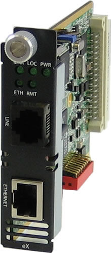 eX-1C110-BNC Fast Ethernet Extender Module: 1 port 10/100Base-TX (RJ-45). BNC (Coax) Interlink (VDSL2) connector.