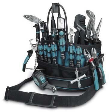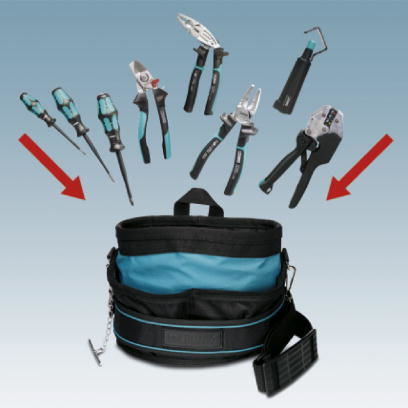 Robuste und strapazierfähige WerkzeugtaschenUniverselle Werkzeug-Sets, mit Schneid-, Abisolier-, Crimp- und Testwerkzeugen aus dem Werkzeugprogramm TOOL fox