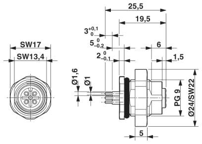 Phoenix Contact 1436330 Flush-type connector - SACC-DSI-M12FS-5CON-L180P -