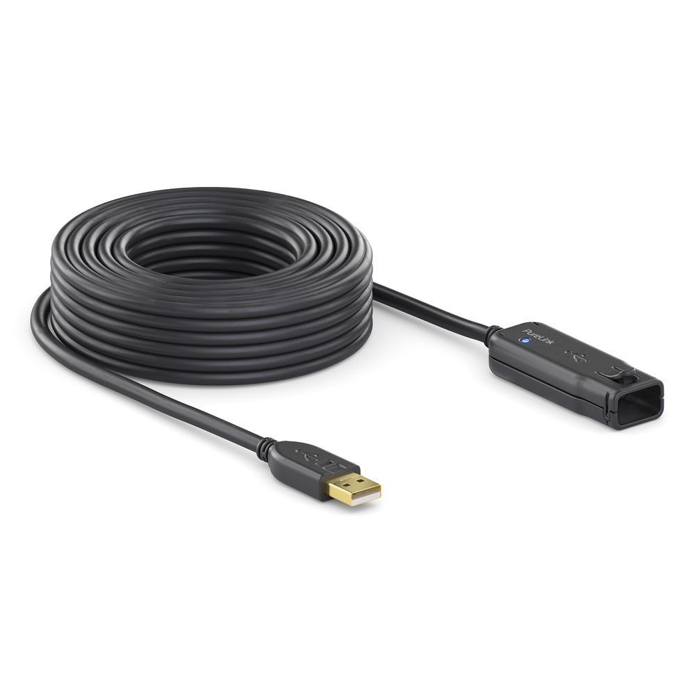 This active USB extension cable is a high-quality and powerful, energy-saving and inexpensive solution for extending USB connections over longer distances. It improves the possible transmission distance between USB devices and the computer to up to 12 meters with one cable, or up to 60 meters with 5 cascaded cables.