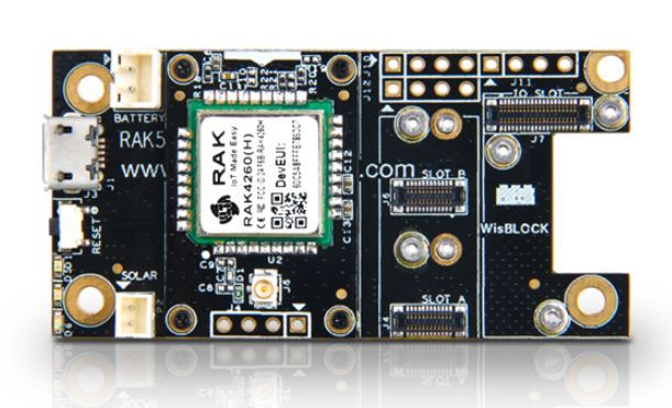 The RAK4200 LPWAN Evaluation Board is a WisDuo product consisting of the RAK4200 LPWAN module and the RAK5005 WisBlock Base. With this development board you can access and easily configure all serial and GPIO ports. The RAK4200 core module contains an STM32L071 MCU and an SX1276 LoRa® chip that complies with the LoRaWAN® 1.0.2 protocols.