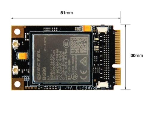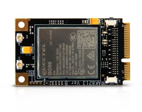 WisLink Cellular mPCIe (RAK8213) is a multi-band LTE Cat M1/Cat NB1/EGPRS module based on the Quectel BG96 with a standard PCI Express® form factor (Mini PCIe). It offers a maximum data rate of 375Kbps downlink and 375Kbps uplink.