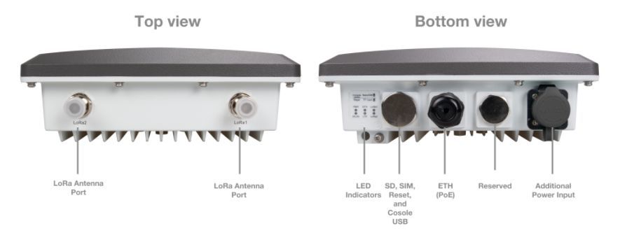 Hardware Industrial grade IP67/NEMA-6 housing with cable glands PoE (802.3af) + surge protection Two LoRa concentrators with 8 channels Backhaul: Wi-Fi, LTE and Ethernet GPS Supports DC 12V or solar power supply with power monitoring (solar kit optional) Internal Antenna for Wi-Fi, GPS and LTE, external antenna for LoRa SoftwareBuilt-in network server OpenVPN software and user interface based on OpenWRT LoRaWAN 1.0.3 LoRa frame filtering (node whitelisting) MQTT v3.1 Bridging with TLS encryption Buffering of LoRa frames in packet forwarder mode in the event of an NS failure (no data loss) full duplex (optional) scope of delivery