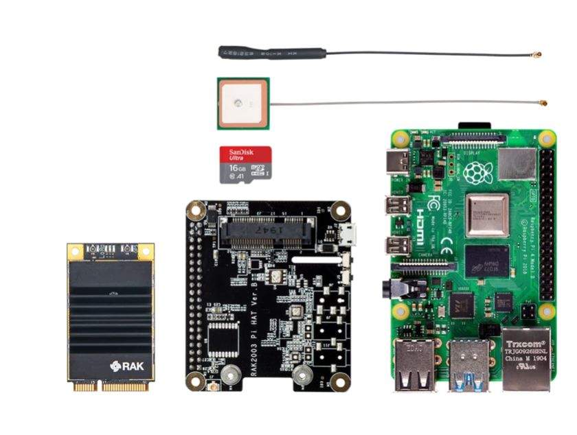 Scope of delivery1x RAK2287 SPI module 1x RAK2287 Pi hat 1x Raspberry Pi 4 1x Ipex LoRa antenna 1x Ipex GPS antenna 1x SD card with pre-installed firmware