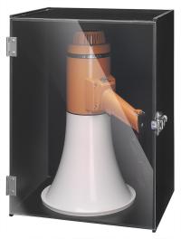 This durable and practical wall-mount storage box is designed for the safe and accessible storage of megaphones HM-012/S, HM-025/S, and SM-025/S. It is ideal for public buildings, schools, sports facilities, and industrial sites where megaphones must be quickly accessible in emergency situations.