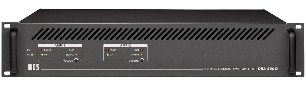 RCS Audio-Systems DBA-500D 1 - or 2-Channel Power Amplifier (750/500 W or 2x375/250 W, 2U), digital, IEC 268-5