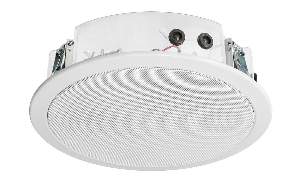 Thanks to its compact depth of just 68 mm and an antistatic PET plastic rear cover, the SRC-612 EN is ideal for shallow ceiling cavities. Installation is quick via spring-clamp mounting, compatible with ceiling thicknesses of 3–45 mm. For added safety, the speaker includes two 2-pole ceramic terminals with thermal fuses, moisture-proofing, and operates within a wide temperature range.