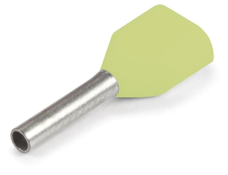 The article RED twin wire end sleeve insulated 2x6qmm 14mm long yellow Cu. galvanized is currently in stock