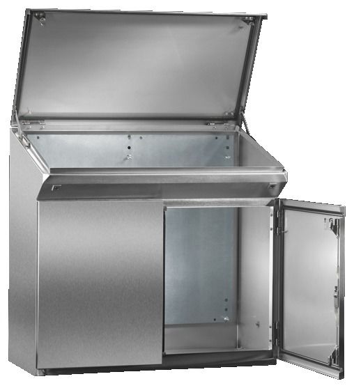 Product modification: As of the production date 01/03/15, the mounting plates in the stainless steel one-piece consoles are no longer delivered pre-assembled, but supplied loose on the outer rear wall of the enclosure. The benefit to you: This eliminates the need to dismantle the mounting plate for machining.