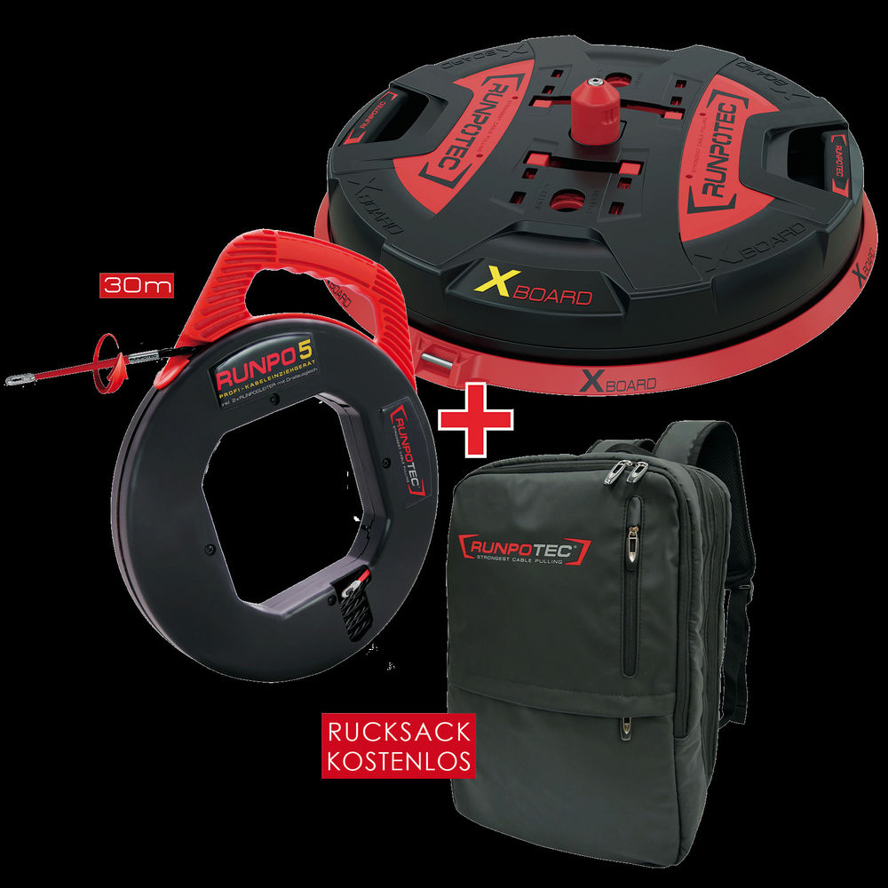 Scope of delivery: 1 x X Board XB 500 including X BOARD mandrel, 1 x RUNPO 5 in plastic box, length: 30 m, including 2 x RG7 guide tip including twist compensation (pressed on both sides), 1 x RUNPOTEC multi-backpack'