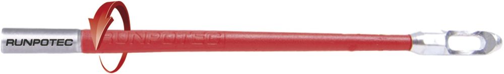 Suitable for Power REX, RUNPOSTICKS, fiberglass rod Ø 4.5mm and Ø 6 mm. The integrated twist compensation allows the cable to rotate in the pipe and thus protects the insertion system and the cable enormously. Numerous stable safety reinforcements in the connection between the spiral strand and RUNPOGLEITER ensure that RUNPOGLEITER spirals are extremely tear-proof (Ø 6 mm > 170 kg / Ø 7 mm > 270 kg). The universal special eyelet head is not only ideal for inserting pull-in tapes, it is also used for the actual pulling in of the cables. Changing the head is therefore not necessary! The extra large eyelet of the special eyelet head can accommodate more cables of up to 7 x 2.5 mm². This saves you valuable time!
