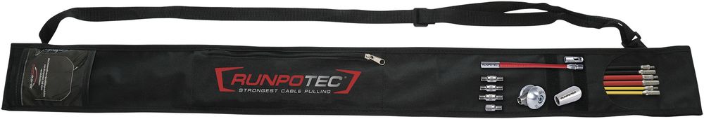 Scope of delivery: 1 x reel guide probe set - RUNPOSTICKS 13-piece including: 2 x RUNPOSTICKS yellow Ø 4.5 mm (soft), 2 x RUNPOSTICKS black Ø 5.5 mm (medium), 2 x RUNPOSTICKS red Ø 7.5 mm (hard), 1 x RUNPOGLEITER with front thread, 1 x roller Ø 25 mm, 3 x connecting thread, 1 x blind screw, 1 x starting bulb Ø 20 mm with RTG Ø 12 mm, 1 x storage bag
