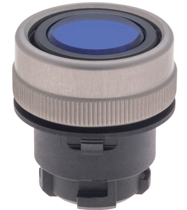 The EDLBL Illuminated Pushbutton is a high-quality control element for industrial applications, combining functionality with aesthetic design. Featuring a robust construction of plastic and aluminum, and an attractive blue button surface with a silver bezel, it is ideal for front panel mounting. With its IP65 protection rating, the pushbutton performs reliably even in challenging environments.