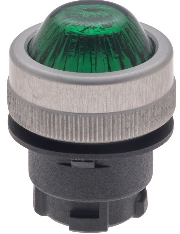 Der Leuchtmelder EMLHGN mit hoher Kalotte ist ein zuverlässiges und robustes Signalgerät für die Frontplattenmontage. Mit einer grünen Kalotte aus Glas und einem silbernen Frontring aus Aluminium verbindet er eine hochwertige Optik mit Langlebigkeit. Die Bauform erlaubt vielseitige Einbaumöglichkeiten, während die Schutzart IP65 den Einsatz in anspruchsvollen Umgebungen gewährleistet. Der Melder bietet eine sichere Befestigung durch den Montageflansch und unterstützt eine Einbauhöhe von bis zu 9 mm über der Frontplatte. Mit seiner integrierten Beleuchtungsmöglichkeit ist er ideal für Anwendungen in der industriellen Automatisierung.Technische Daten: