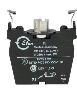 The device features flat plug connections in sizes 6.3 mm x 0.8 mm and 2 x 2.8 mm x 0.8 mm, enabling simple and quick installation. Connection cross-sections range from 0.5 mm² to 2.5 mm² for solid wires and up to 1.5 mm² for flexible wires. With an IP20 protection rating, the ELF is ideal for use in protected environments.