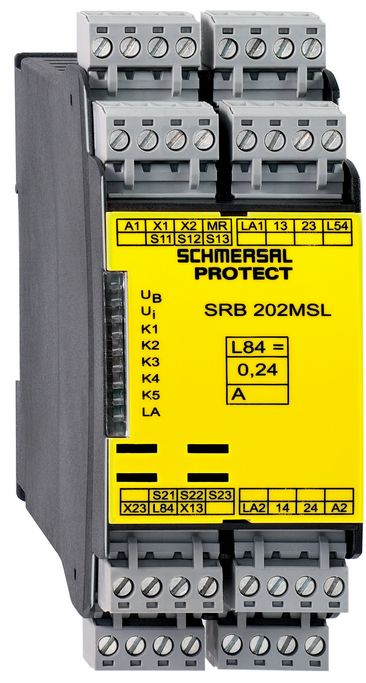The SRB202MSL safety relay is specially designed for applications requiring muting functions. It ensures reliable safety in machine monitoring and supports 2-channel control for contact amplification or duplication. This model is no longer available but can be replaced with similar products.