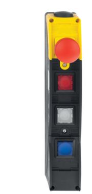 The BDF200 offers a high mechanical lifespan of up to 1 million switching cycles for the pushbuttons and 100,000 switching cycles for the emergency stop button. The electrical connection is made via removable screw terminals, allowing for easy and flexible installation. The built-in cable glands ensure secure wiring with a clamping range of 6 to 13 mm.