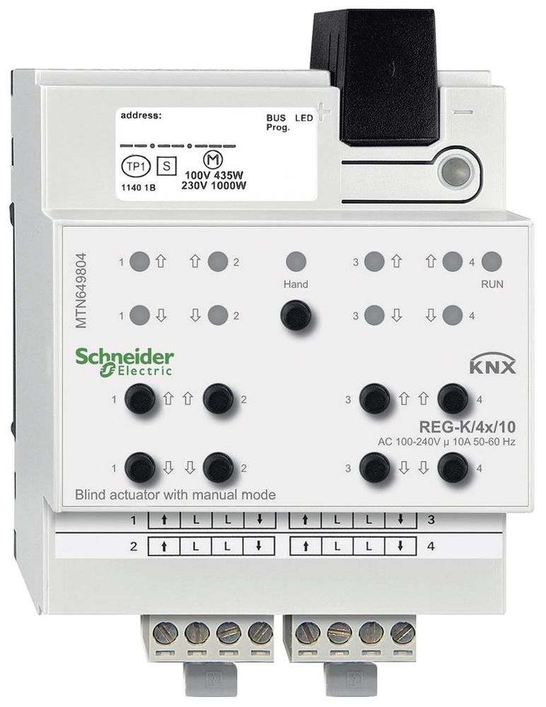 We offer you Schneider Electric MTN649804 Schneider blind actuator REG-K/4x/10 with manual operation, light gray always at the best possible price. We can give you a discount of 2% on Schneider Electric MTN649804 Schneider blind actuator REG-K/4x/10 with manual operation, light gray if you choose payment in advance on ordering.