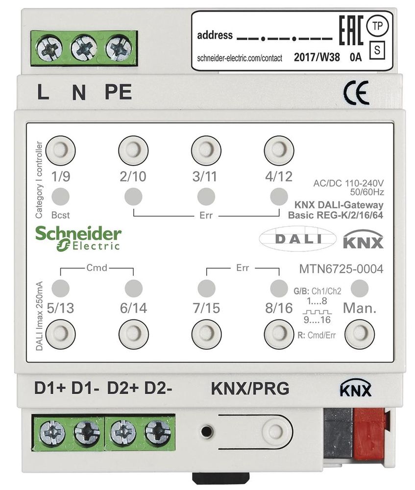 Schneider Electric MTN6725-0004 Schneider KNX DALI Gateway Basic REG-K/2/16/64 2-channel