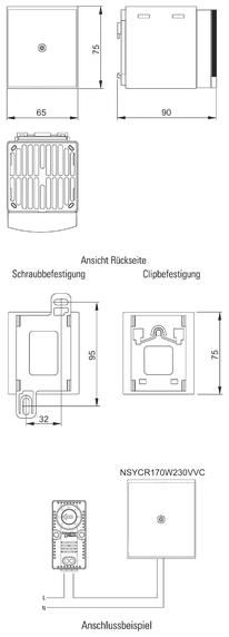 We offer you Schneider Electric NSYCR170W230VVC Schneider ClimaSys PTC resistance heater 177W 230V with fan always at the best possible price. We can give you a discount of 2% on Schneider Electric NSYCR170W230VVC Schneider ClimaSys PTC resistance heater 177W 230V with fan if you choose payment in advance on ordering.