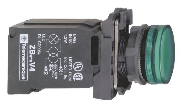 Schneider indicator light green BA9s 120VAC transformer 1.2VA cap smooth art.