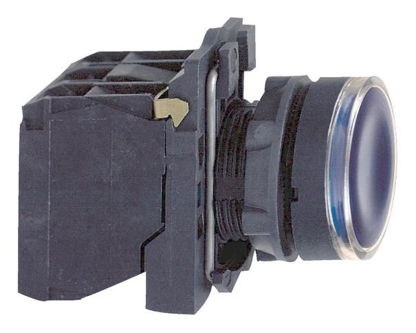 Schneider Electric XB5AW36B5 illuminated pushbutton ,, blue, flat, 1NO + 1NC, tast. LED 24VAC / DC