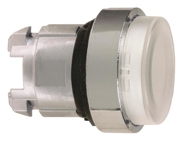 Schneider Electric ZB4BH13 illuminated pushbutton, latching above white chrome