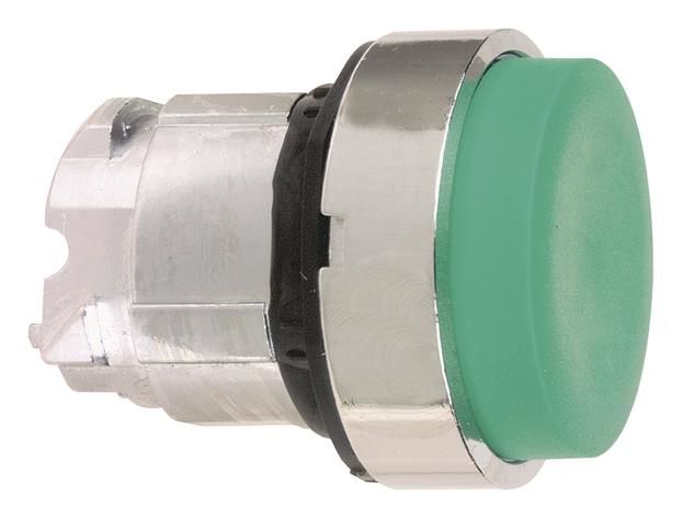 Schneider Electric ZB4BL3 pushbutton above, green groping chrome