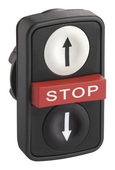 Schneider Electric ZB5AA71124 Schneider triple pushbutton ARROW up ws/vorst.rot/ARROW down sw