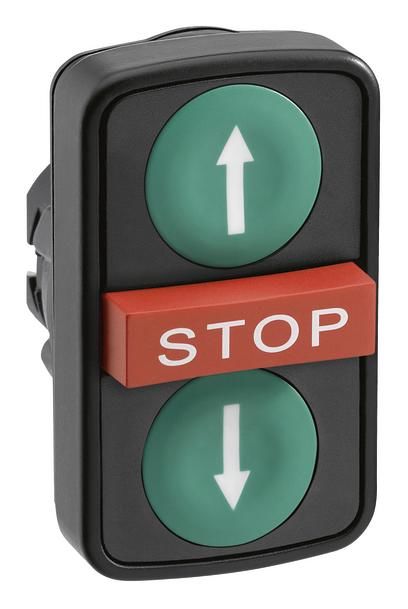 Schneider Triple pushbutton ARROW high gn/forward. red/ARROW down gn