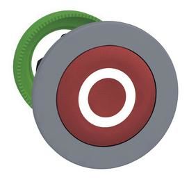 Schneider pushbutton, front, label O, momentary, red, 30mm