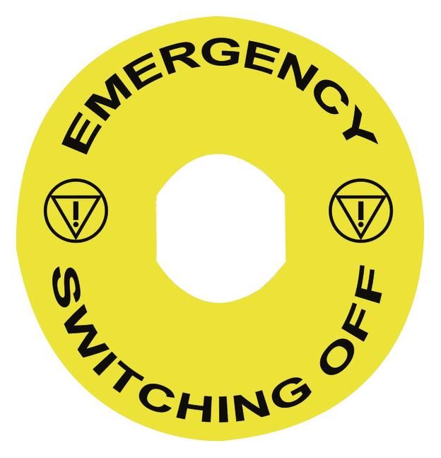Schneider Electric ZBY9360 Schneider sign 60mm yellow EMERGENCY Switching OFF for Pilzdr.EMERGENCY OFF is offered by us in a sales unit of 10 pieces If you need a larger quantity, you can contact us at any time. We will make a special offer for you