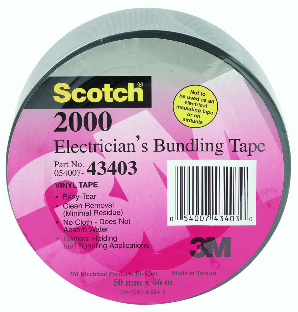 Hold, bundle, mark and terminate cables with 2000 General Purpose Tape Gray. This tape is a general purpose electrician's tape that leaves no adhesive when removed.