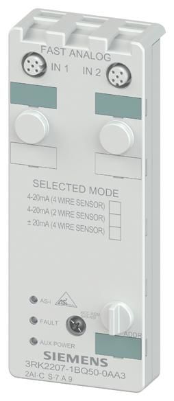 Siemens 3RK22071BQ500AA3 AS-I compact module analog K60 IP67 2AE A/B slave