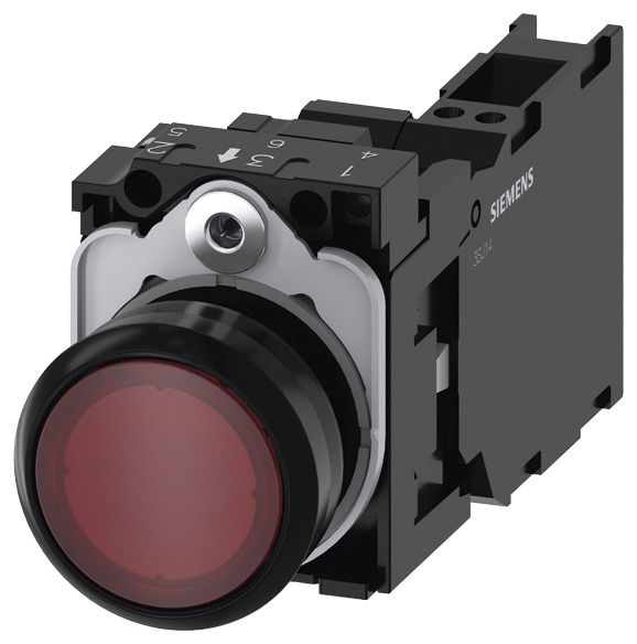 Siemens 3SU11020AB203FA0 push button illuminated 22mm round red button NO+Ö AC/DC 24V