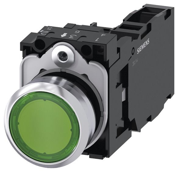 Siemens 3SU11520AB401FA0 push button illuminated 22mm round green button S+Ö AC/DC 24V
