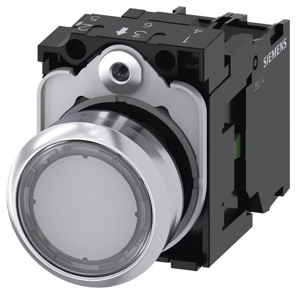 Siemens 3SU11520AB701BA0 push button illuminated 22mm round clear button 1S AC/DC 24V