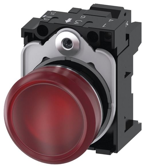 Siemens 3SU11526AA203AA0 indicator light 22mm round red lens smooth AC/DC 24V